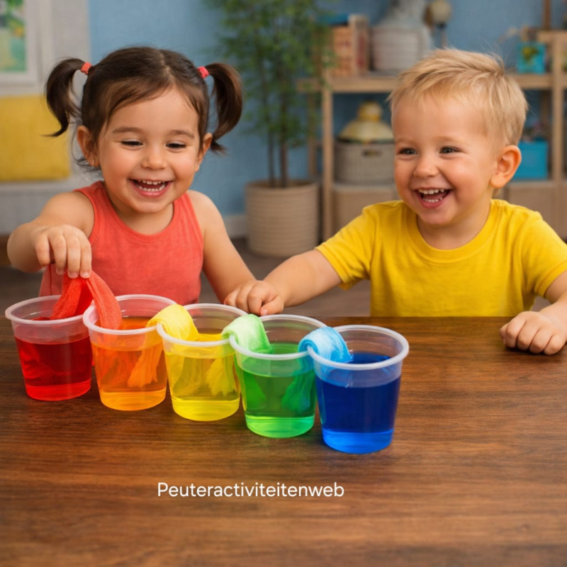 Kleuren mengen met water is een eenvoudige en leerzame activiteit voor peuters. Met dit experiment ontdekken kinderen hoe kleuren zich verplaatsen en met elkaar mengen. Dit zorgt voor verwondering en stimuleert de ontwikkeling op een speelse manier.