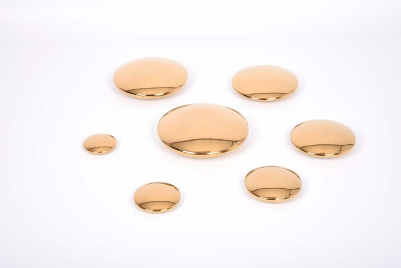 Deze 7 gigantische gouden knoppen, robuust gemaakt van roestvrij staal, hebben een aangenaam afgeronde discusvorm met gladde naadloze randen en zijn gegradueerd in grootte van 50 mm tot 140 mm diameter.