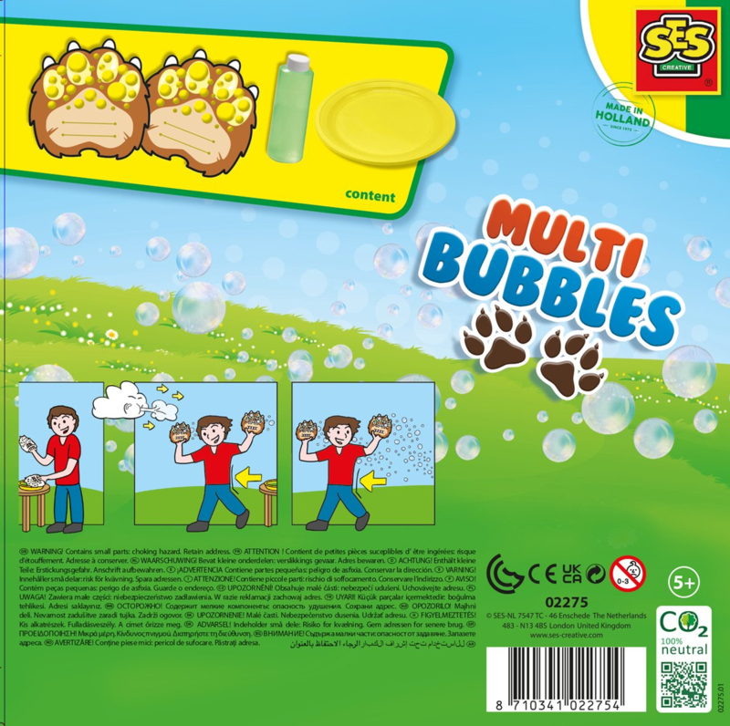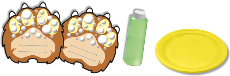 De klauwen kun je eenvoudig over je handen schuiven. Dip ze daarna in het supersterke bellenblaassop en wapperen maar!
